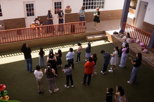 Nuestros maestros preparan cada clase con material didáctico adecuado para los niños, utilizando dibujos, cantos, movimientos y actividades que hacen el aprendizaje dinámico y divertido.